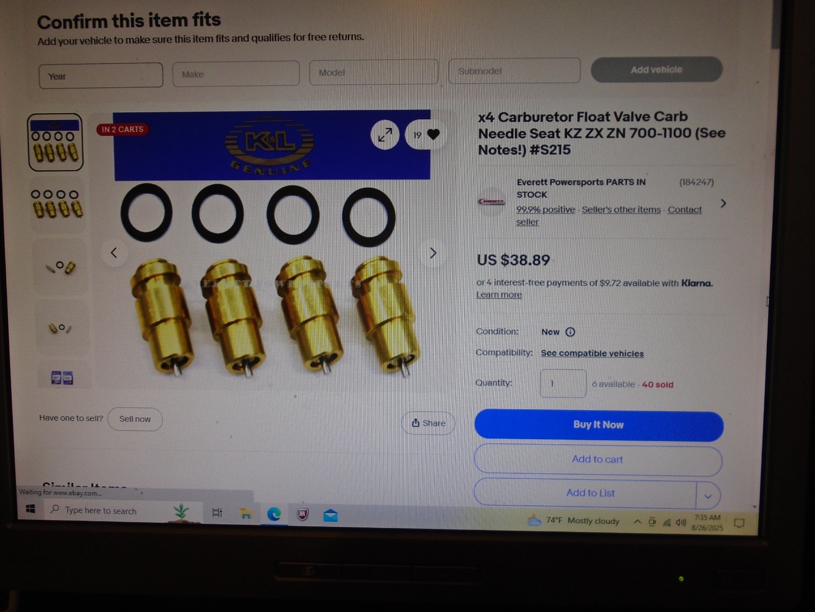 Going ChEaP isn't going to resolve your issues unfortunately. Look closely at the float needle tip, really CLOSE with a magnifying glass. You'll see the tip is rough drafted and not a smooth taper. Tourmax products are just Chinese in disguise. The FAT rubber would be for the Pilot slug. The thinnest one would be for the pilot adjust needle washer/spring/oring. The other one, couldn't tell you? Those cheap kits often come with extras of unused stuff. I can say, that brass tapered screw isn't correct!! Looks more like an air adjust screw which these BS34's didn't use. In addition the true J carbs had AIRCUTS for adding extra fuel on deceleration to prevent it from afterfire. Good luck...You'll be back, ha.
