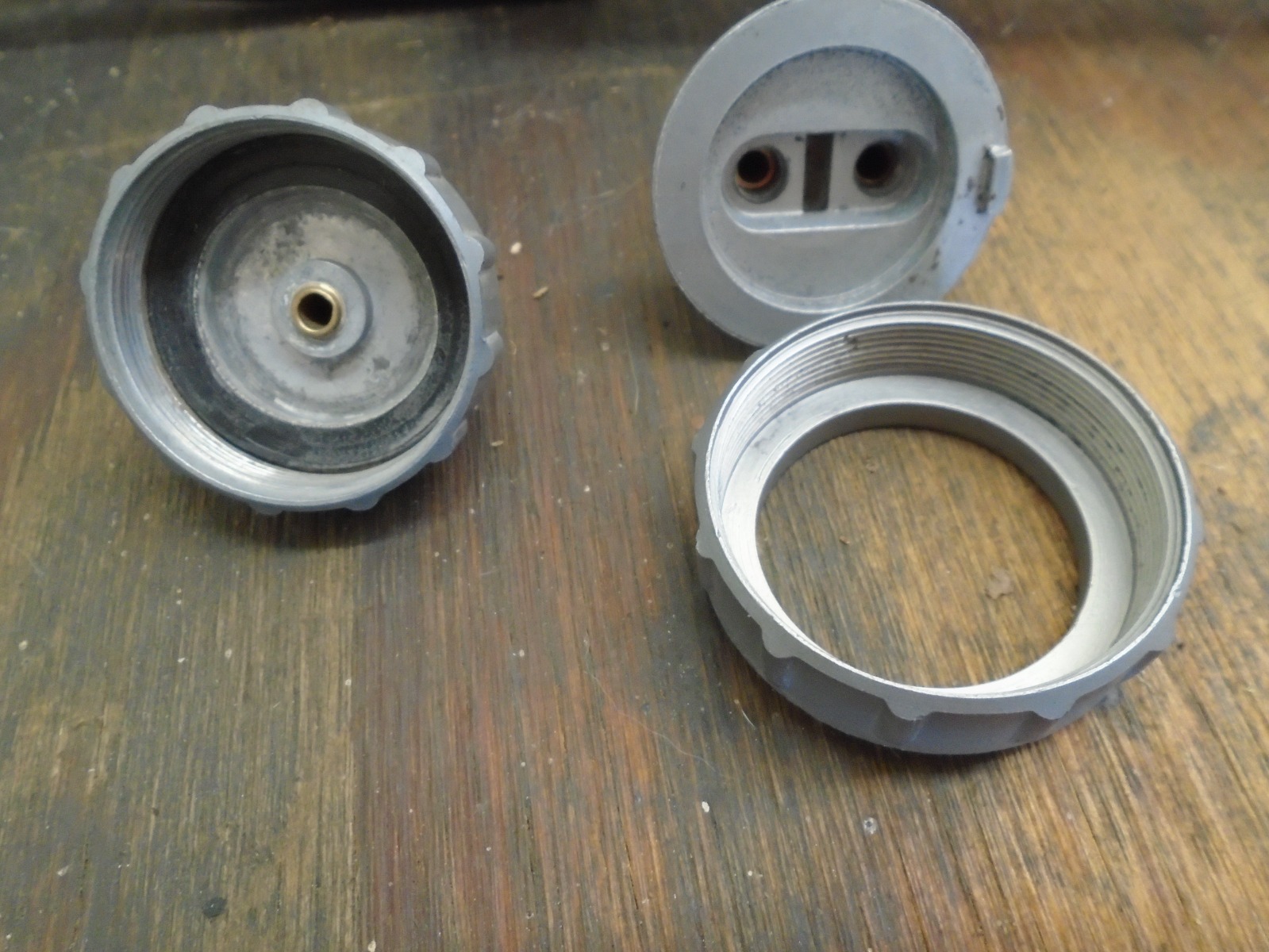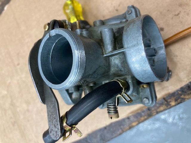Some photos of the two types of knurled slide caps. And an assortment of TS125 (2 but different years) and RV125 similar carbs. Just like gd4now mentioned, check the numbers stamped on the intake flange! One side will have a series of 5 numbers other will have 2 numbers often occupied with random alpha/numerical sometimes Japanese fonts. Side with 5 numbers will be arranged with 3 numbers over 2. This is the carb identification for machine it was intended for. Your Partzilla schematic states Carb Assy 29110 so you should see 291 over 10. Date coded otherside will "sorta" correspond with your machine year +/- DOM. Showed a picture of the two types of caps but note the two piece design was generally reserved for Rotary valve (side mount) carbs or the early multi cylinder two-strokes that used a rod to pull-up the slide for idle. The Main Jets on all the 125's i have are in the 85-92.5 range so Your use of a 105 would be in the ballpark. Note when cleaning!! The Air Correction for Pilot system is hidden underneath that little brass ball bearing you will note looking down the intake port of carb. The Air Screw gets it's air from the Main (Center Bigger) galley. I often drill out the brass ball to really get in there and clean crap correctly then replace with a grub screw but that's just me.