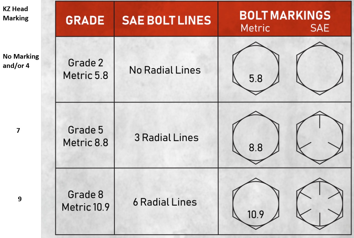 I'm not sure about back in the Z1 days, but with the later year KZ bikes, the hardware comes in four head markings: unmarked, 4, 7, 9, from weakest to strongest.