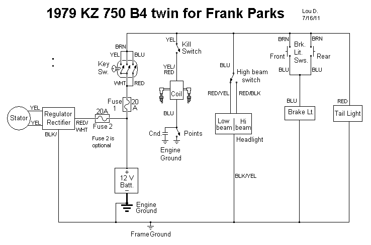 I'm back and hoping you can help me out now that I have my plan straight. Again, I have a 78 KZ650 C2 with the following wiring diagram: