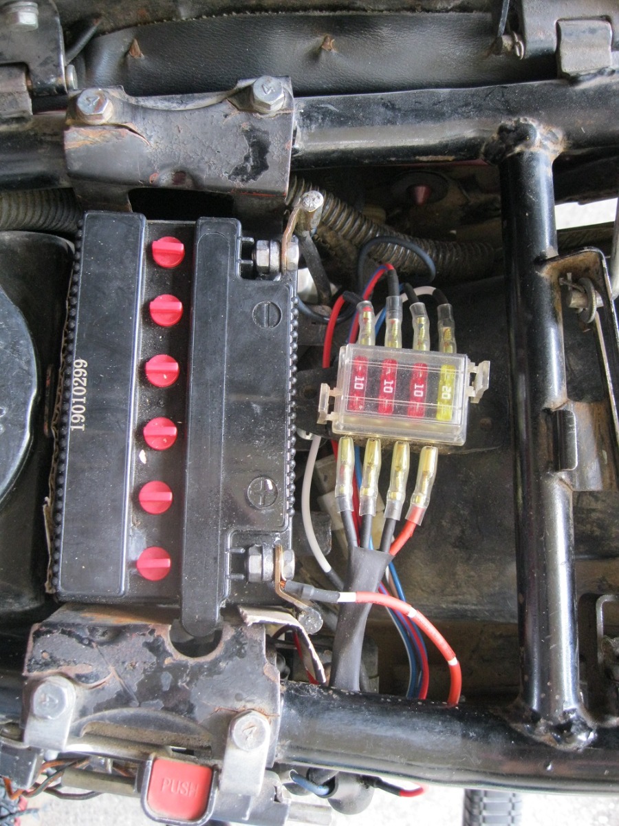 Holds 4 fuses. My local small Kawasaki dealer can get anything that's in the Drag Specialties Fatbook.. The back was open so I glued a bit cut from a old mudflap in place to seal. There are probably newer and perhaps better options on the market since I did this