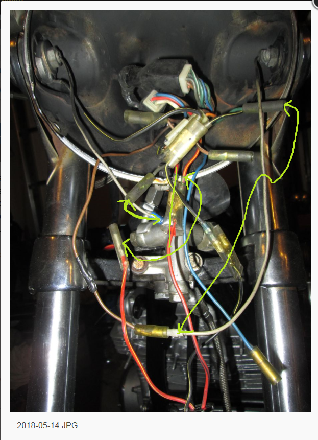 I pulled the harness out of my 76 KZ900 a month ago to paint the frame. Looking back I have to admit I should have marked wires and taken some pictures but with previous bikes it was always a simple matter reconnecting everything, just match the connector and the color wire.. pretty cut and dried. I've been stuck now for two days on this bike however... couple things, I changed out the handlebar controls and although the canon plugs match up with the ones in the harness, there's an extra single blue wire coming out of each control harness that the stock control wiring didn't have. But the big puzzle is the headlight bucket with several unmatched wires. There's a Brown female a blue female, a brown/white female, a two into one brown into a flat female, a blue female, and out of the left turn signal there's what I'm guessing is a grey male, all of which have no mates. I'm thinking maybe some of this may be the wires coming out of the harness in the area of the coils but I don't think they'd be long enough to match up. Any help or suggestions would be appreciated.