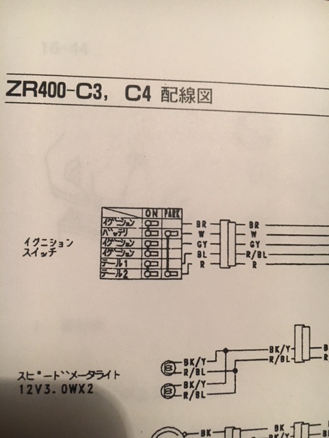 Here is the factory wiring diagram for the zr400 (in Japanese!):