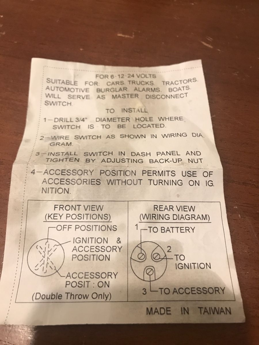 Maybe these will help me wire in the new switch which has 3 contacts. Ignition - Accessory - Battery