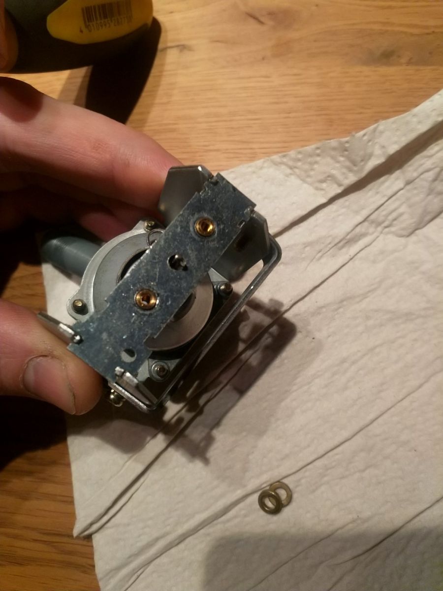 In reply #801763 on pg 3, he says there are 2 tiny clips that hold the needle shaft in place.