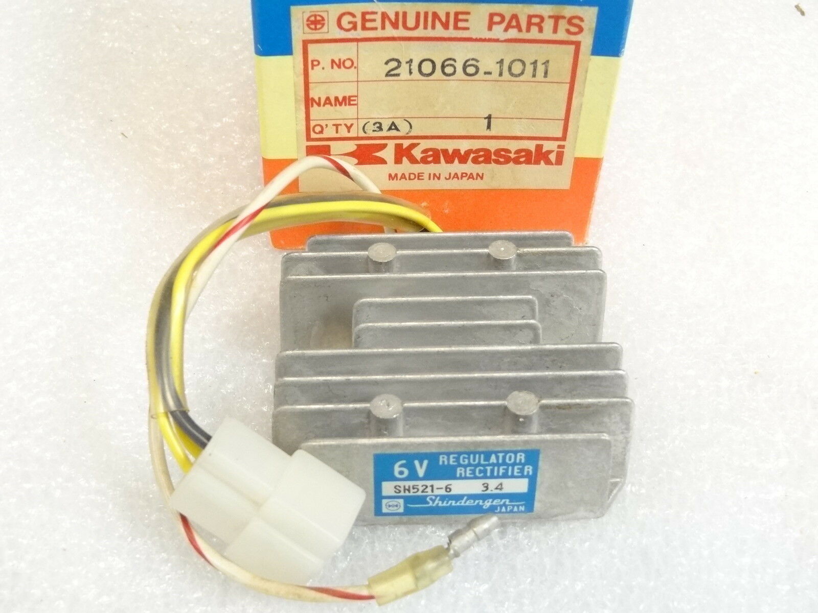 For the reg/rec, the cheapest solution is to get a used, genuine Kawasaki factory reg/rec from an early 2000's Ninja 250 or 500 model. They can be had reliably for $10 to $15. They have the same wire combination, but you have to splice the connectors.