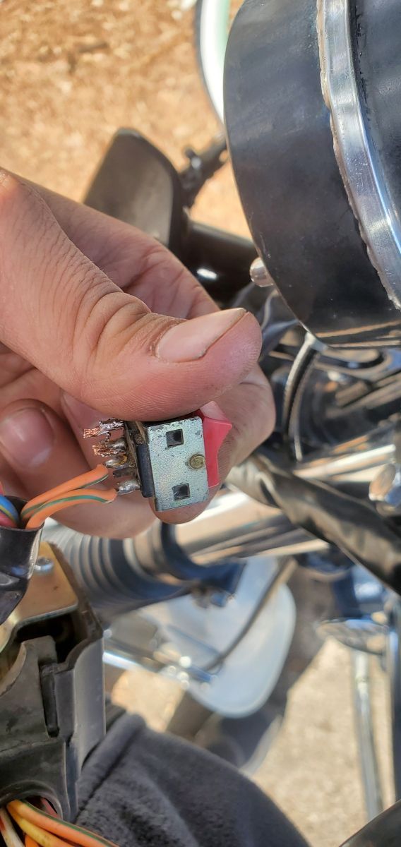 My Hazards have not been working on my 2001 KZ1000p so I finally tried to fix it. I have verified that the relay is good as I can manually get the hazard to work by connecting the output of the relay to the turn signal wires. I have attached some pictures of the hazard switch as this is where I have determined that things are going wrong. The connection with the arrow is the input from the relay and the one without the arrow is the output of the switch that goes to the rear turn signals. For the life of me, I can not figure out if this is wired incorrectly or not. There are three other connections on the switch that are not used. I tried grounding two of them to no success, as you can tell by the unique soldering job I did. Any help would be appreciated. Here is a link to the wiring diagram that I am having problems figuring out as well.