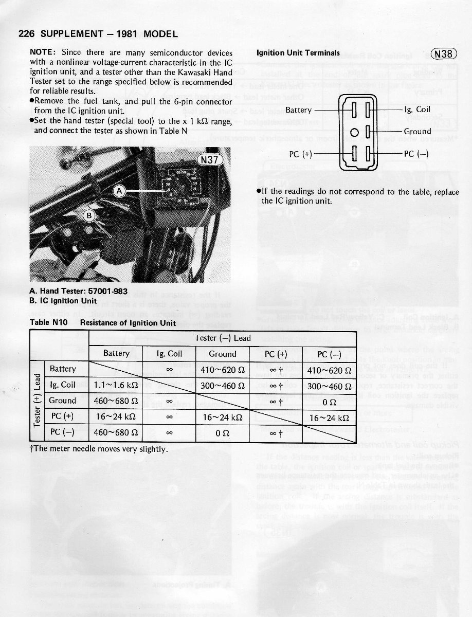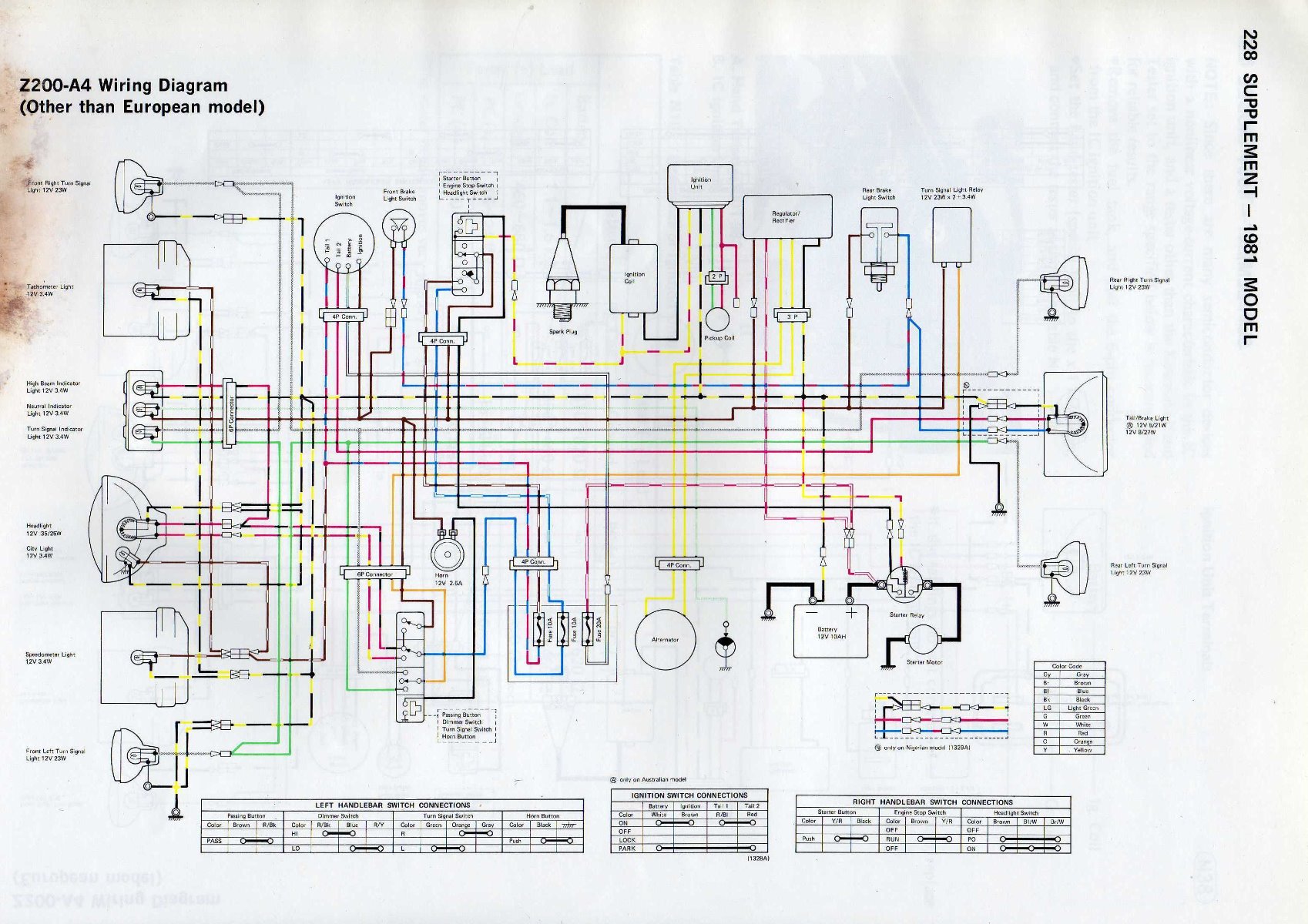 I have attach a file of a KZ200 service manual and the information you need is in the supplement at the back of the book. Hope this helps and there is amply spares floating around.