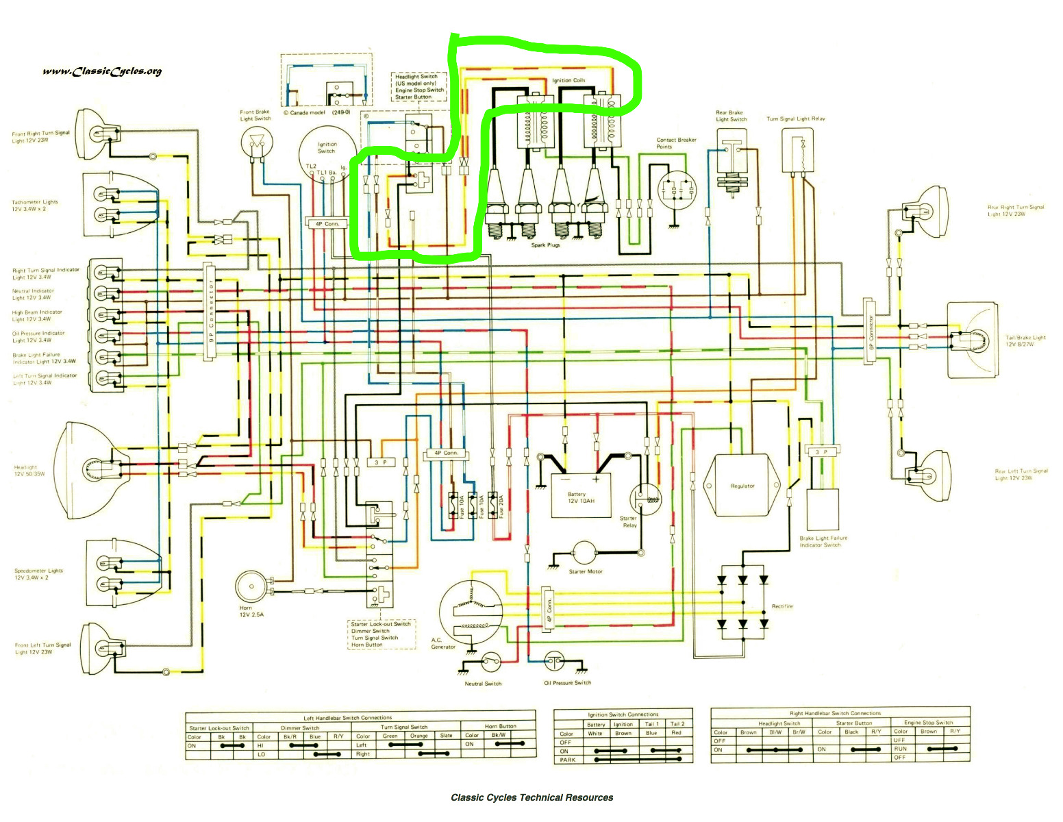 The wires from the switch should be in a black vinyl loom going from the switch along the handlebar to the coil.