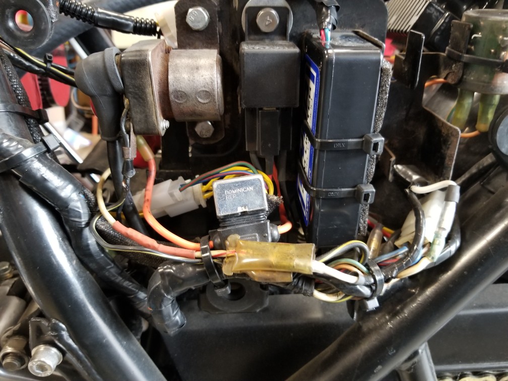 I'm trying to identify my main wiring harness so I can order a replacement. I've looked at some pics of '78 models and the harness looks nothing like what I have. The wiring was a real mess when I got the bike and I was able to repair it enough to get the bike running. I have since added a rev limiter, volt regulator, coil mod and fuse box, I'd just like to replace the main harness to clean it up a bit. I'm not sure what to do here!