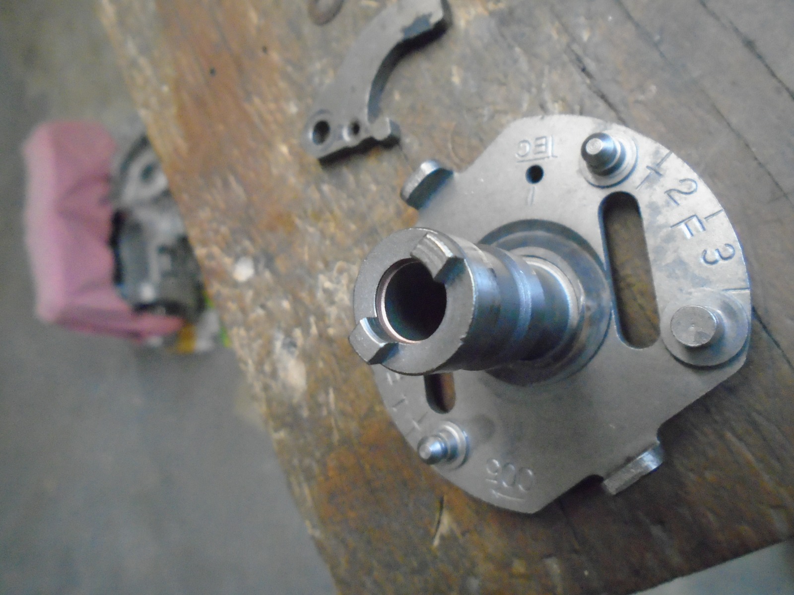 Is anyone aware of a super early advance unit? Just going thru some containers and ran across an advance base that caught my eye. Wider plate but the HH manufacture stamp and different location of lines for TDC and F. It fits on the crank so.... maybe a Honda CB or.....