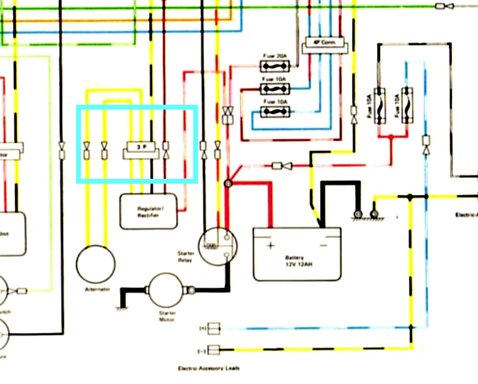To test the alternator you may have to remove the LH engine sprocket cover to gain access to the 2 yellow wires coming from the stator. Sometimes EB pics are handy for stuff like this, but I didn't see a good engine photo. However, there are a few good pics of the stator wires & reg-rec wires.