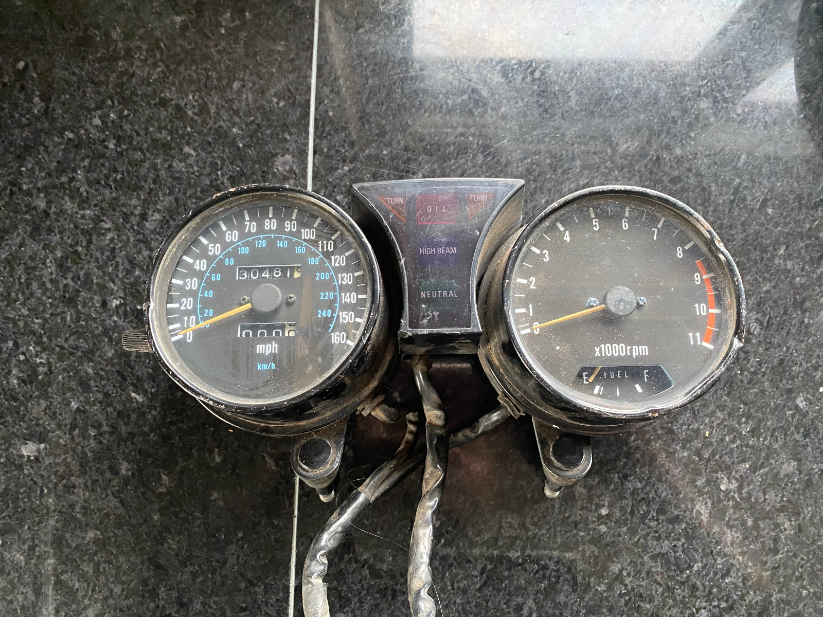 Need help identify this instrument cluster, it came in a job lot and i cant find anything like it on the web, It has the feel and look of mamma Kawasaki and its a fairly big cluster, the distance between the mounting bolts is 120mm. its fairly battered so its good for what i have planed for it but i don't want to damage it any more if its a rare cluster when i can find a cheaper more beat up set. Any and all help is always appreciated.