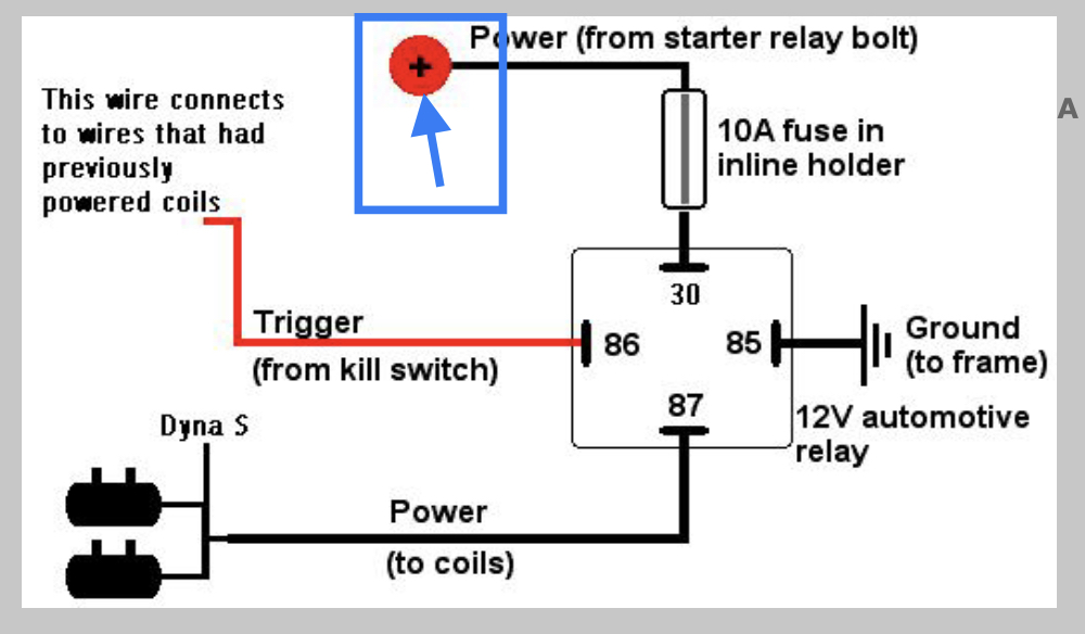 Where did you connect to coils power. In blue box below? I when direct to battery. It’s fused so no concerns. At the starter rely your relying on the battery positive wire. Direct you eliminate another voltage drop.