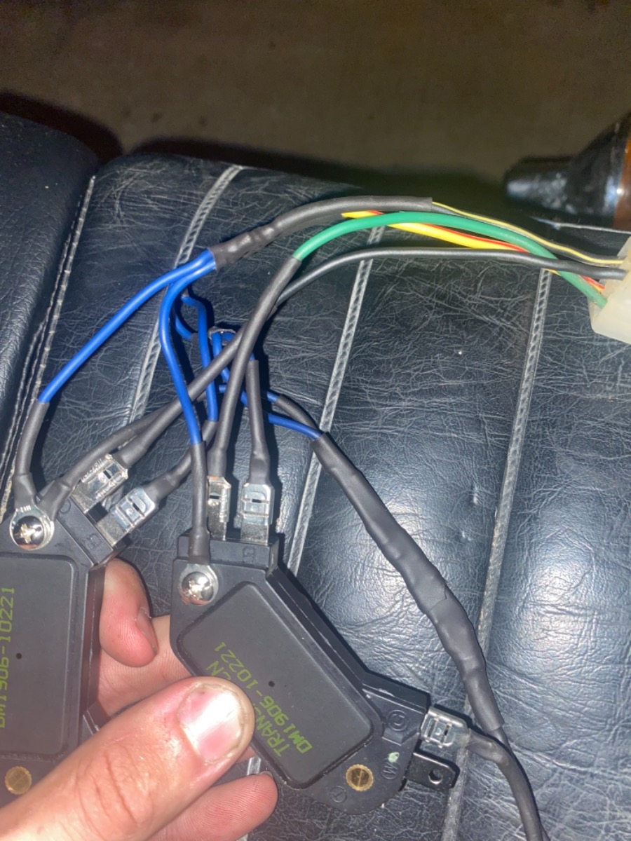 the grounds on the modules, I made sure the diodes were facing the right way, resistor direction doesn’t matter. All other terminals run to a female spade and are crimped on. Followed the schematic to a T. Plug it in, ground out a spark plug and get nothing. Any way to test the new harness? Diodes and whatnot, I will post a picture of what it looks like when I get home from work.