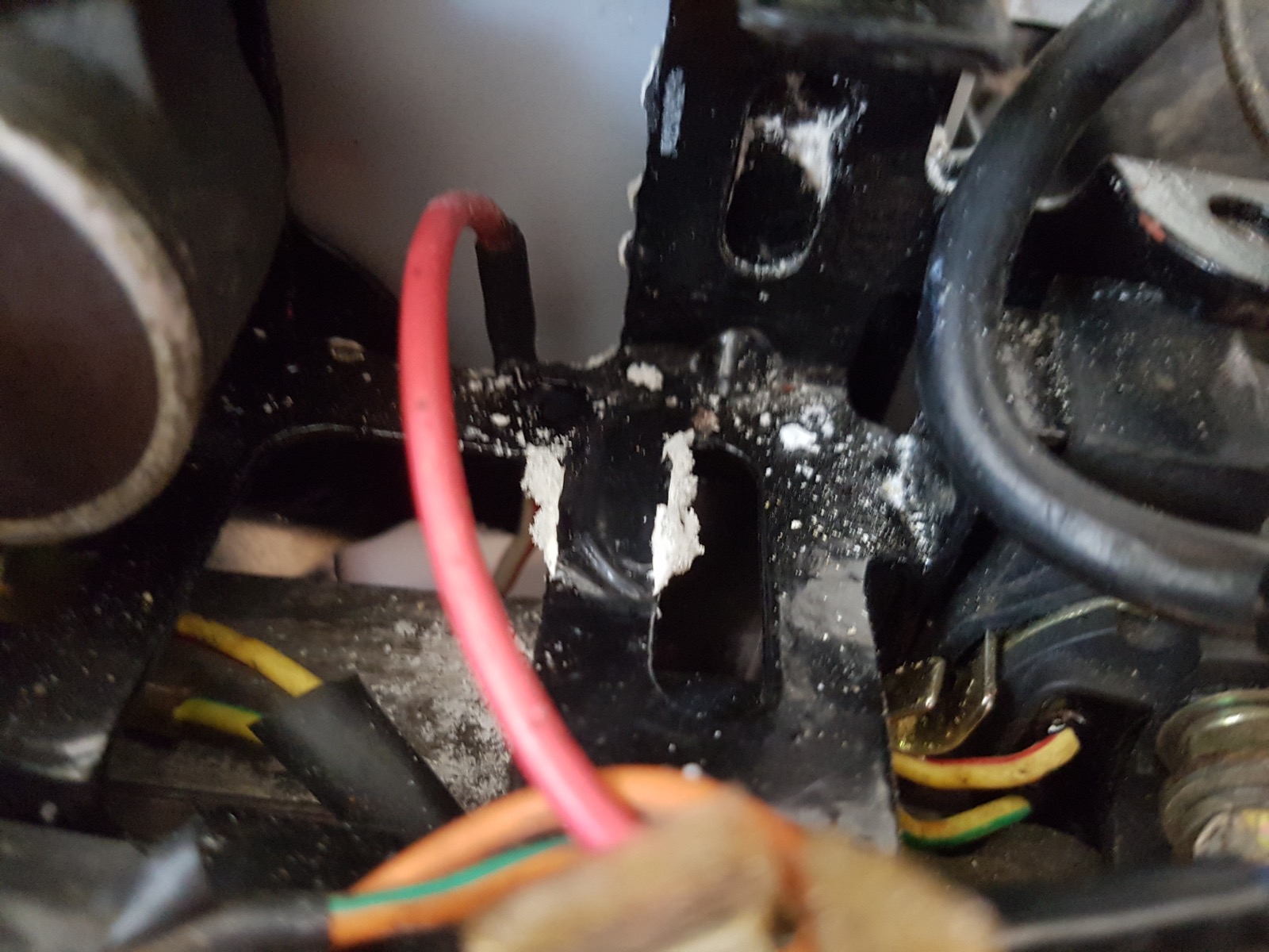 Potential problem locations: I'm thinking the problem could be a few things. I'm very new to working on things so you'll have to excuse any ignorance. When I opened the bike up I was surprised to find a bunch of the white fluff (oxidization?) had reappeared under my paint (Pic #1). I'm thinking this has to be electrical because I stripped and painted all the internal metal electrical holsters less than 7 months ago.