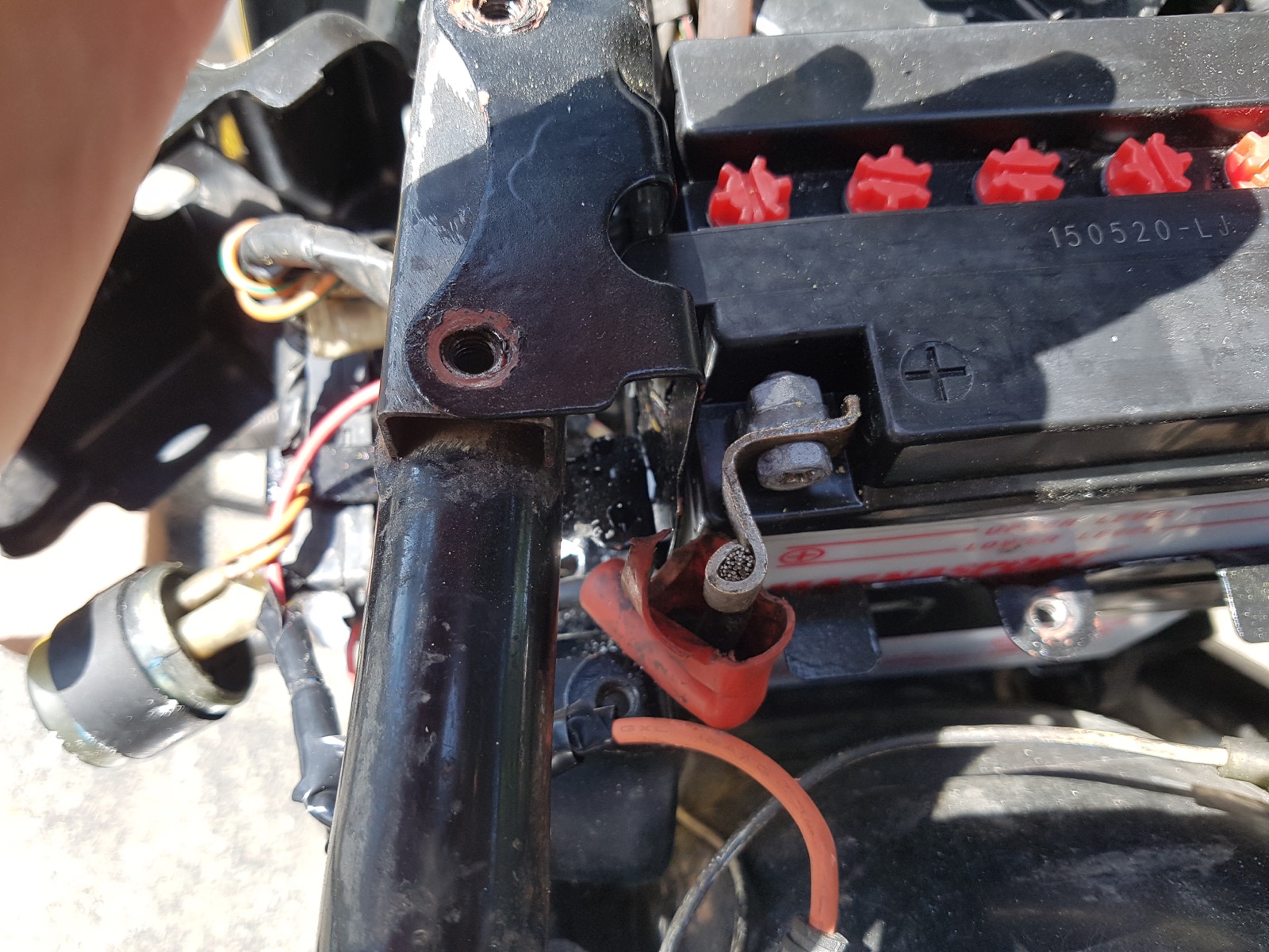 3. Battery terminal cover. It is not really needed as long as the battery is properly tied down and you do not do something silly like touch it and the frame at the same time with a wrench or screwdriver. The battery really needs to be properly tied down for its own health and your safety. If the battery has not been tied down, it could be splashing acid all over the place while you ride. When it is time to replace the battery, I suggest an AGM. They are sealed and a good one will last many years.