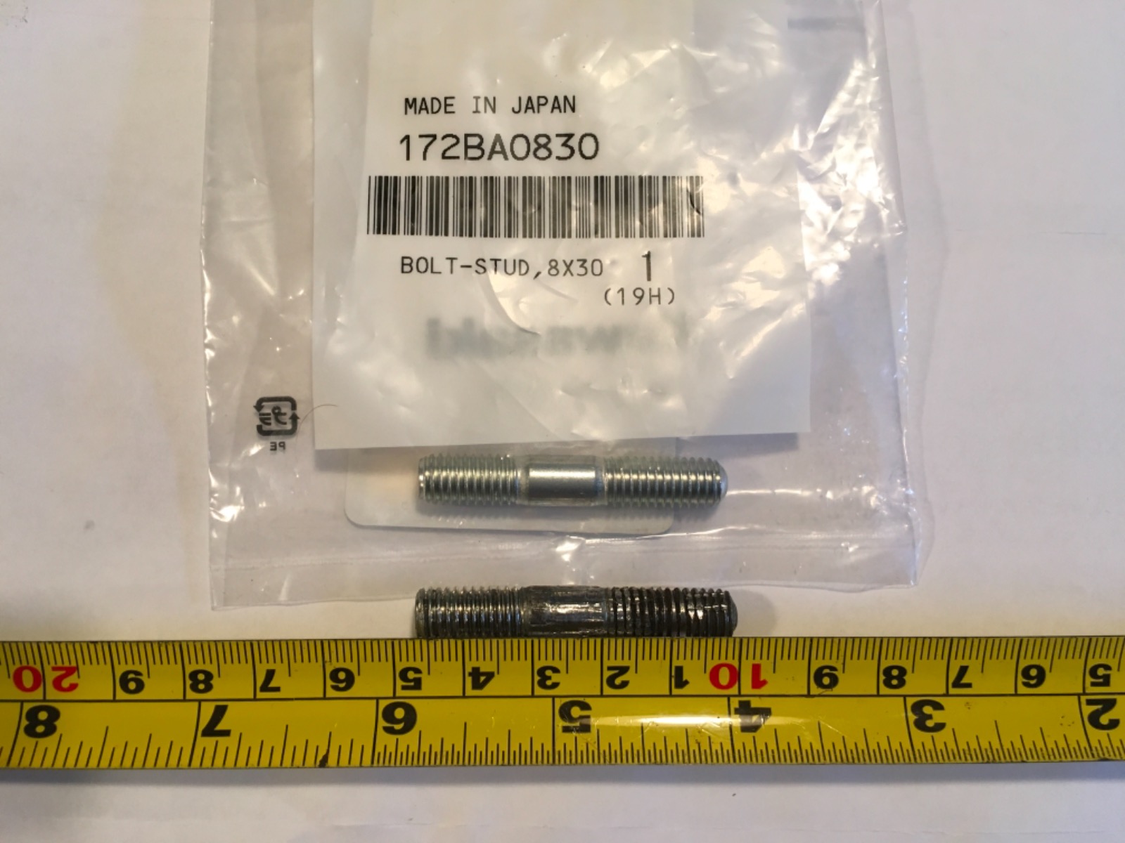 So I broke open the piggy bank and ordered the axle clamp studs. Along with a few other small item, I figured I might as well shipping was cheap. It turns out axle studs listed as 8 x 30 is actually the protruding (visible) length the new one match up the the old in overall length.