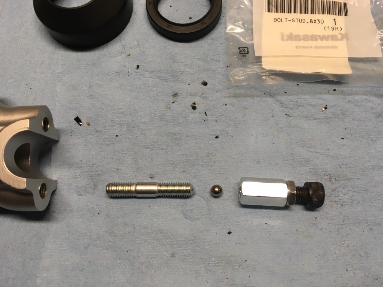 Need some help. I admit to being a “big dummy” as Fred Sanford would say. I thought I’d be slick and remove the fork lower axle studs before I sent the lowers out to be blasted. Well that was a bad mistake. I completely gooned up the first one so I decided to leave the rest alone. After vapor blasting I’m sure the studs will rust. Correct? I can’t find a listing for them separate from the fork lower. The one I pulled is 8mm x 48. I checked Partzilla and the lower axle holder is the same as used on several years of a 1000p. Unfortunately those fiche don’t show the stud separate. I checked the 1977 Ke250-B1 that is listed as using the same axle holder, it’s fishe does list the stud separately but calls it out as 8mm x 30, agin mine is 8mm x 48. If the size listed is not overall but the exposed installed length then I think it will work. Partzilla shows it next to a ruler and it appears to be about 1 7/8” maybe overthinking a $2.08 part but I’d like to get them replaced.