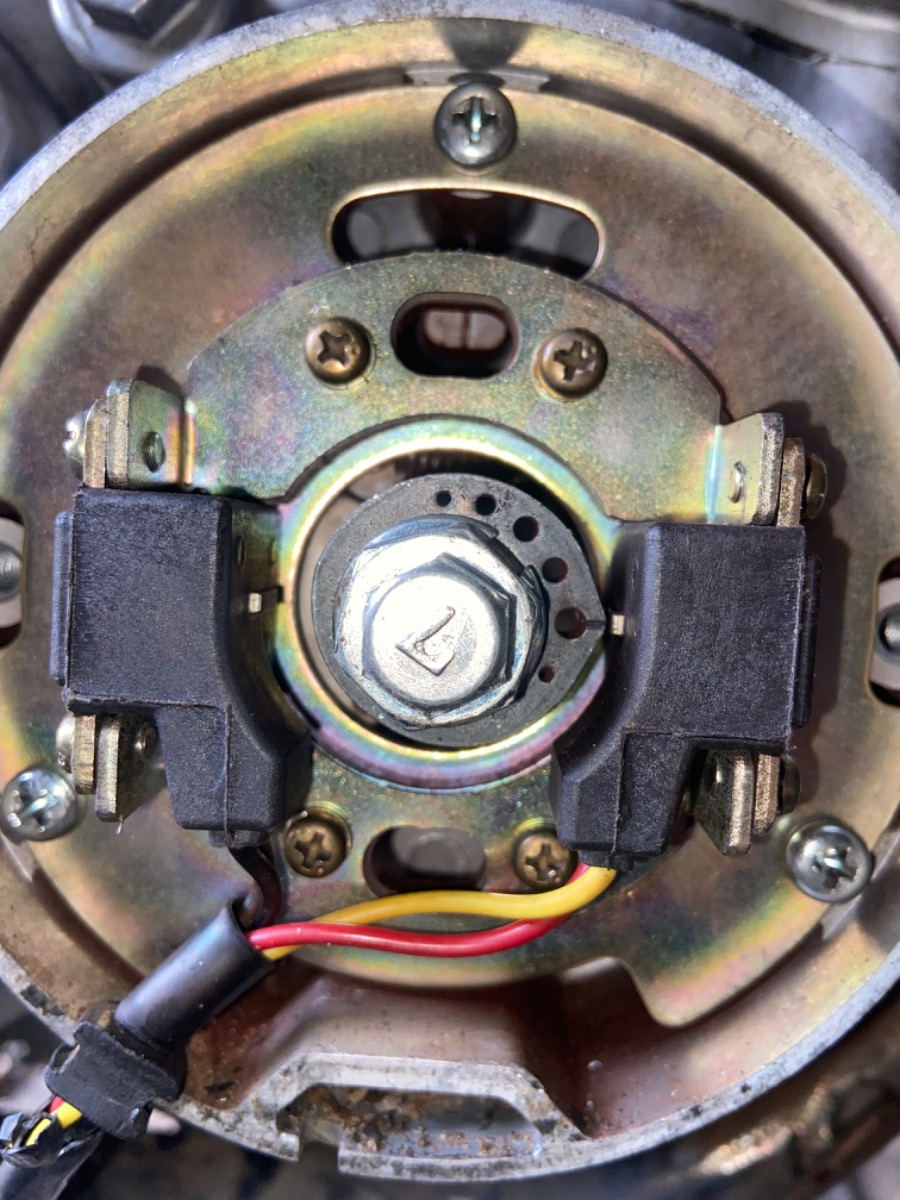 I have wired up a test bench on the engine in attempt to get spark with no luck. I am thinking my problem may lay in my points system.