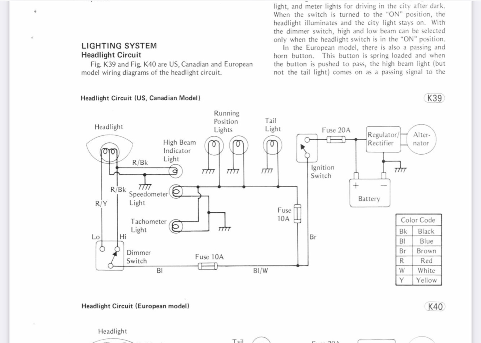 13 May 2022 18:31Think I understand...when I make those connections with the multimeter probes, what should I be looking for, a voltage reading of around 12 volts?Most Kz’s have black with yellow stripe as a ground in the headlight bucket. Get the 3 terminal headlight connector, multi meter on DC, black from meter into the black/yellow female terminal. Then red to one of the others. (Sorry don’t know your actual colors) One wire is positive for low the other is positive for high. Ignition on stop/run/stop in the stop position. If you have a “lights” switch on the right hand control switch it to on. Left control on low for the headlight. Black/yellow to one should have power. Flip to high beam and check from black/yellow to the third wire.