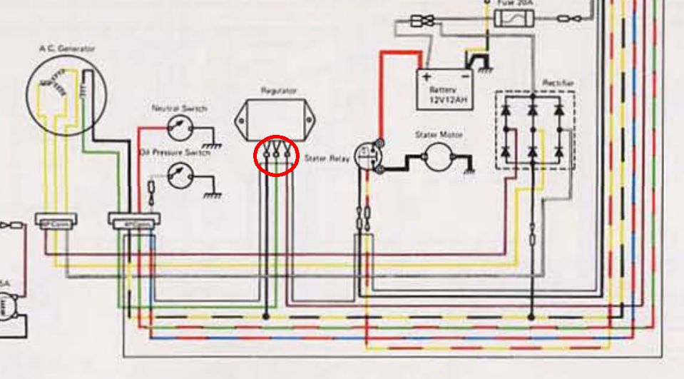 30 Jul 2022 15:46You will have continuity on the oil pressure and neutral switches to earth - this is how they work, when the pressure comes up or you select a gear the earth is broken and the light goes outSo I tested for continuity on all of them and I got some on both the neutral and oil pressure switches. Not sure if this tell me anything though of if those are supposed to have it. I traced the green wire and found the regulator but there's a couple extra wires going to it. I'll try unplugging the green wire and seeing what happens.