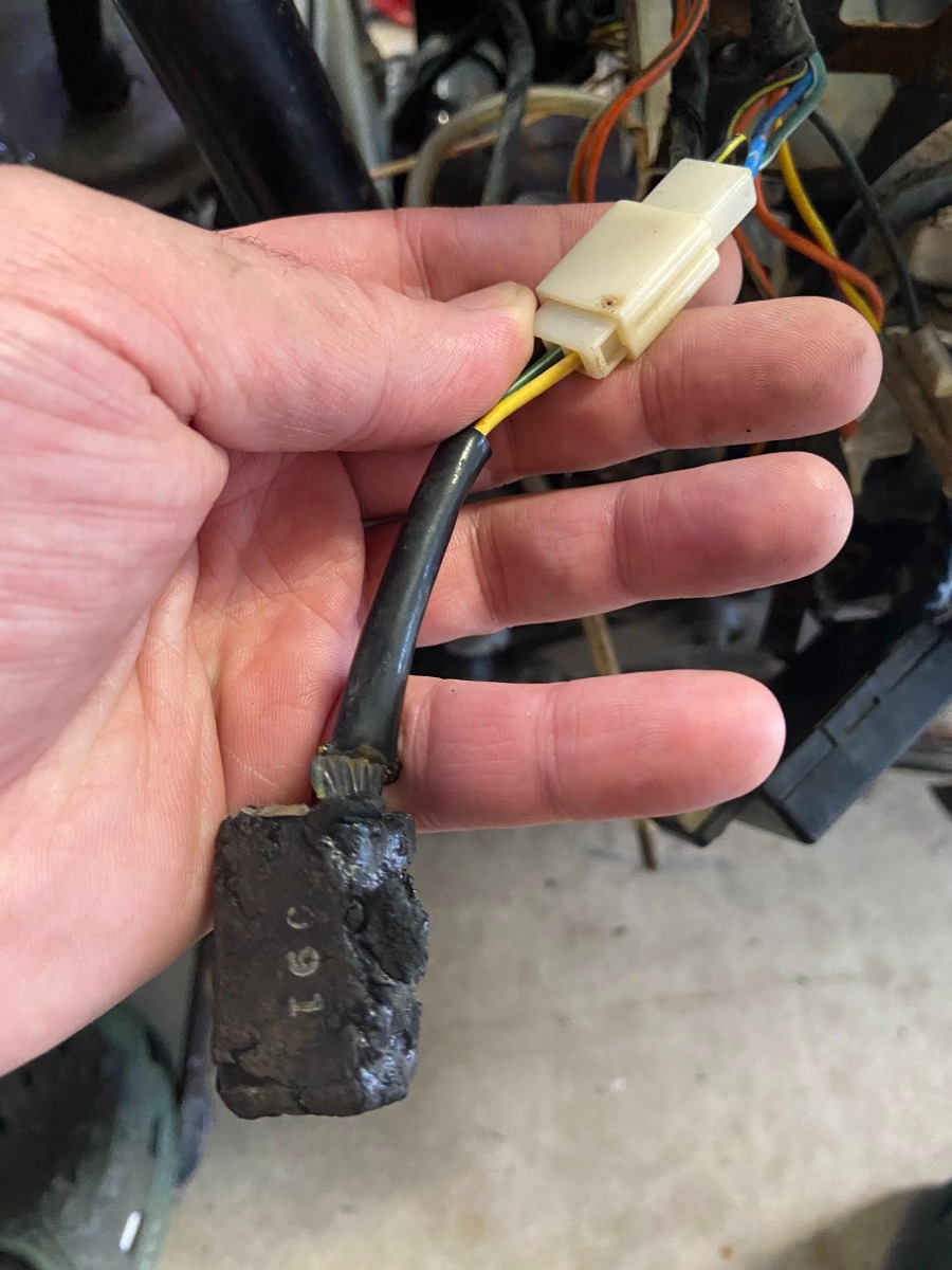 Last pic is either an outage indicator switch, fuel check switch or brake light failure switch: the wiring diagram is showing the latter w yellow, black & green-white wires. It's melted for some reason. possibly shorted out. ???