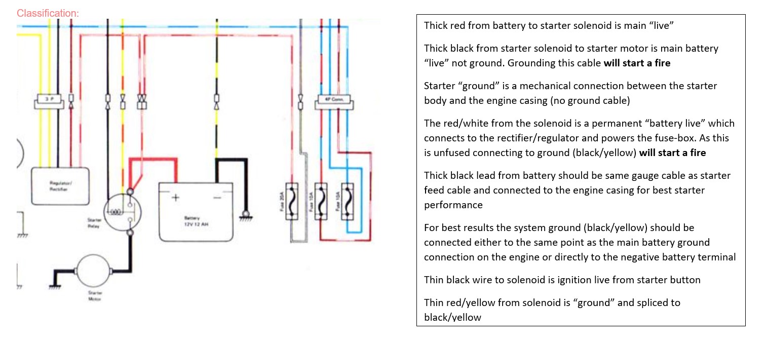 there is also larger gauge ground from the starter relay to the starter motor. This is "live" not ground
