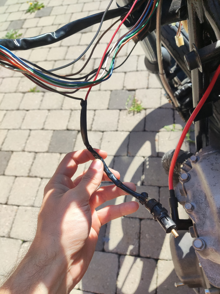 Hi, I've recently been given KZ440 LTD Belt Drive (West German model) and I've decided to customise it a little bit without any previous electrical or mechanical expericence (heh) . Previous owner put on LED headlight, turn signals, and tail light. I put on LiFePo4 battery and will be making underseat tray for it and making new warning lights dash. Since i will be reorganising electrical component, I decided to tidy up wires a little bit since everything was wrapped together in electrical tape. After taking off the tape and cleaning the wires i have found this thing just hanging around. I've looked into the wiring diagram but cannot trace it. It goes into left handlebar switch with Black/Yellow wire and then splits into Red wire that goes to the front near headlight.