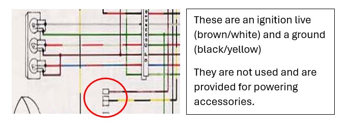 See the below pic for an explanation of the spare wires - now for the "important" bit. do you still have the bulbs out ? schoolboy error on my part (comes from dipping in and out when I'm supposed to be working