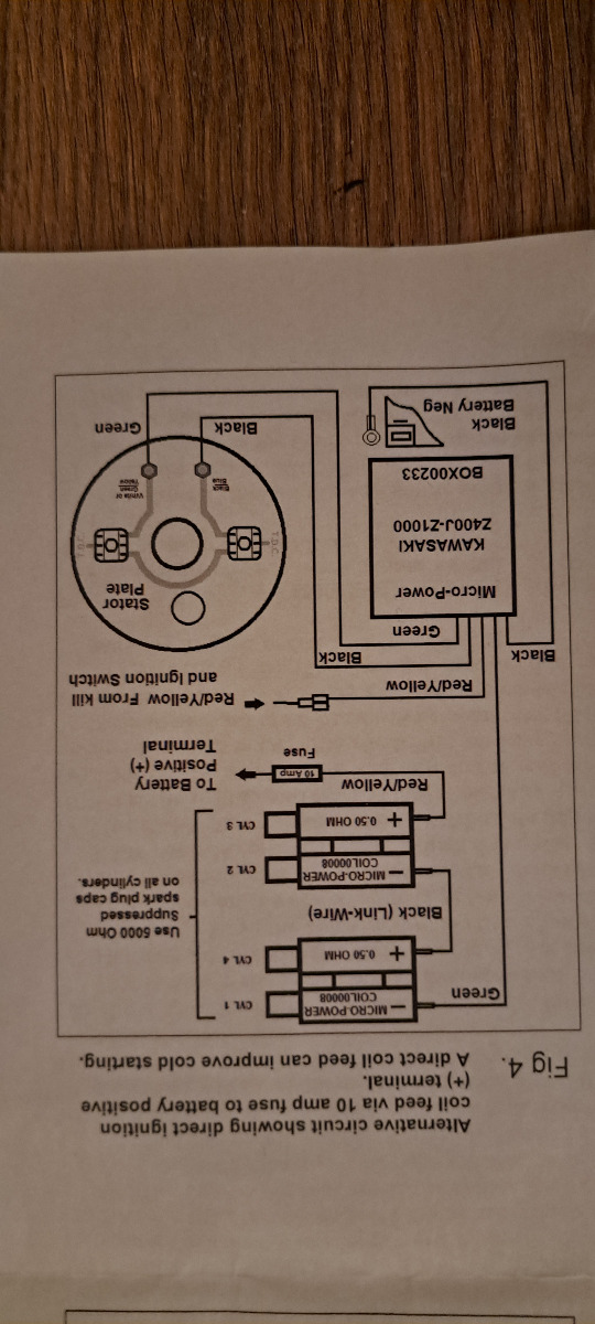 but i have used the alternative wiring diagram that uses a direct wire with a 10amp fuse going direct to battery positive from one of the coilsIt is the picture abowe that is upside down and named fig 4. the coils are new special coils made to work with the boyer microprosessor. I have timed the with a strobe light ,but started thinking that