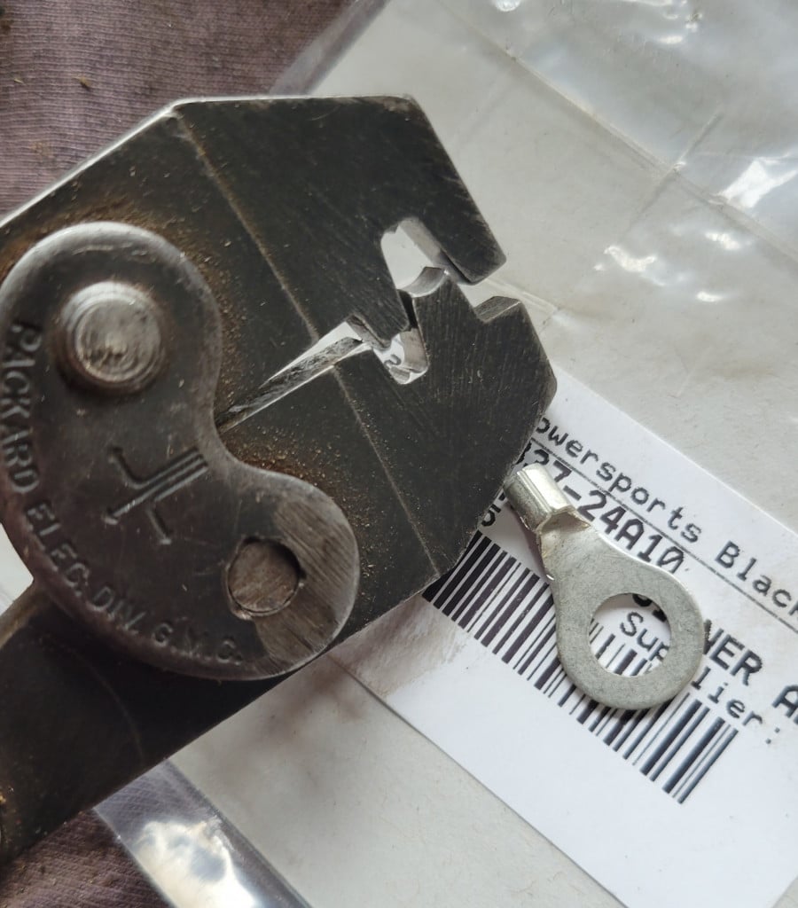 The stock terminals are open barrel terminals and you'll want to use an open barrel crimper. I already had a HarborFreight ratcheting crimper but the dies were wrong, so I got a set of open barrel dies from Aircraft tool supply on amazon. CycleTerminal.com has a crimper. not sure if you have to get the dies separately, so ask. VintageConnections is another place with terminals etc. Wherever you get your stuff, be sure to buy plenty of spare terminals for practice or in case you mess up.