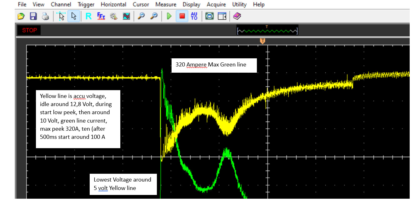 I made a scope grap of the current and voltage during start (with the new starter), see attachment