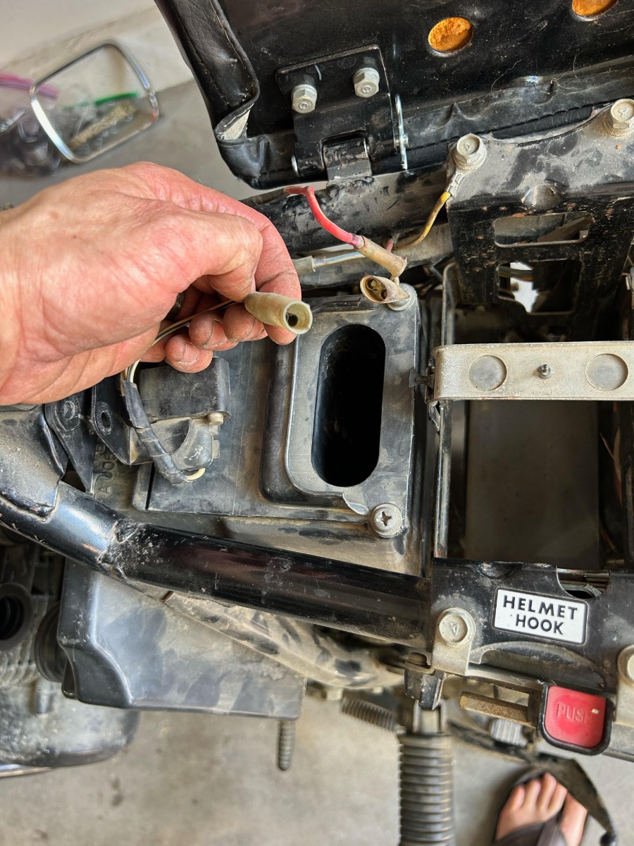 Recently I acquired my uncle's 81 GPz550. It sat for probably 20 years until about 10 years ago my brother got his hands on it. Not sure what he or his friends did but everything on it that's been touched has something wrong or missing on it. I got my hands on it and I'm restoring it and trying to do it right. Rebuilt the front brakes, currently rebuilding the carbs, repairing the fuel tank and more. To the point: there's something electrical that's missing from under the seat. No idea what it could be. I'm waiting on a new battery so unable to test it. I've looked at the repair manual (I'm no electrician btw) and looked at diagrams on partzilla and am unable to determine what's missing. Anyone have an idea?