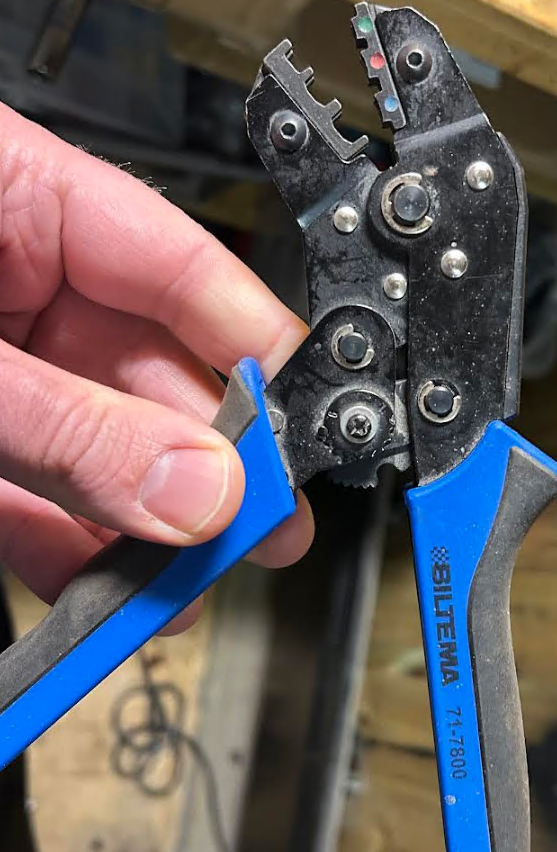 open barrel crimper. these are typically ratcheting. the dies can be replaced for different terminals.
