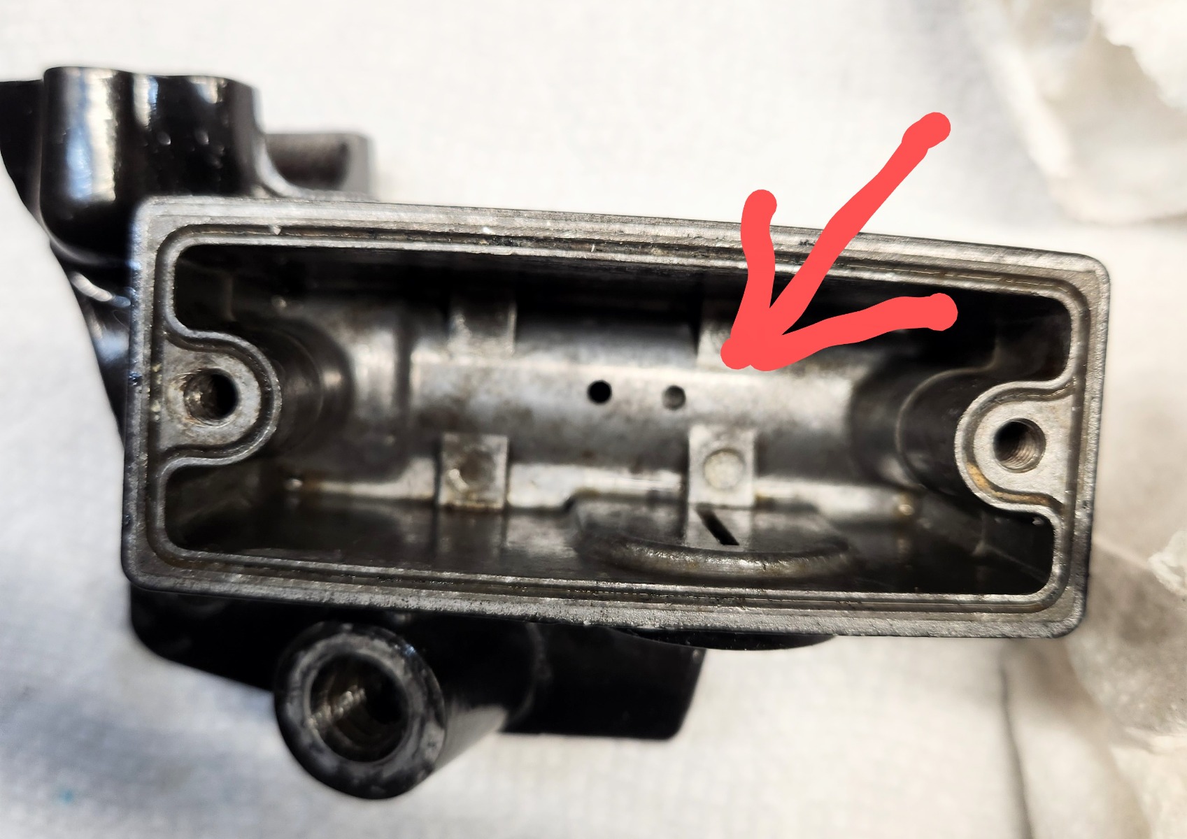 My freshly rebuilt front master cylinder wont pump... Question is, should both holes in the bottom of the reserve be open? Only the one closest to the brake lever is open, the other does not go through to the piston. On the inside of the cylinder, I cant see any sign that it ever went all the way through. But she no pumpy!