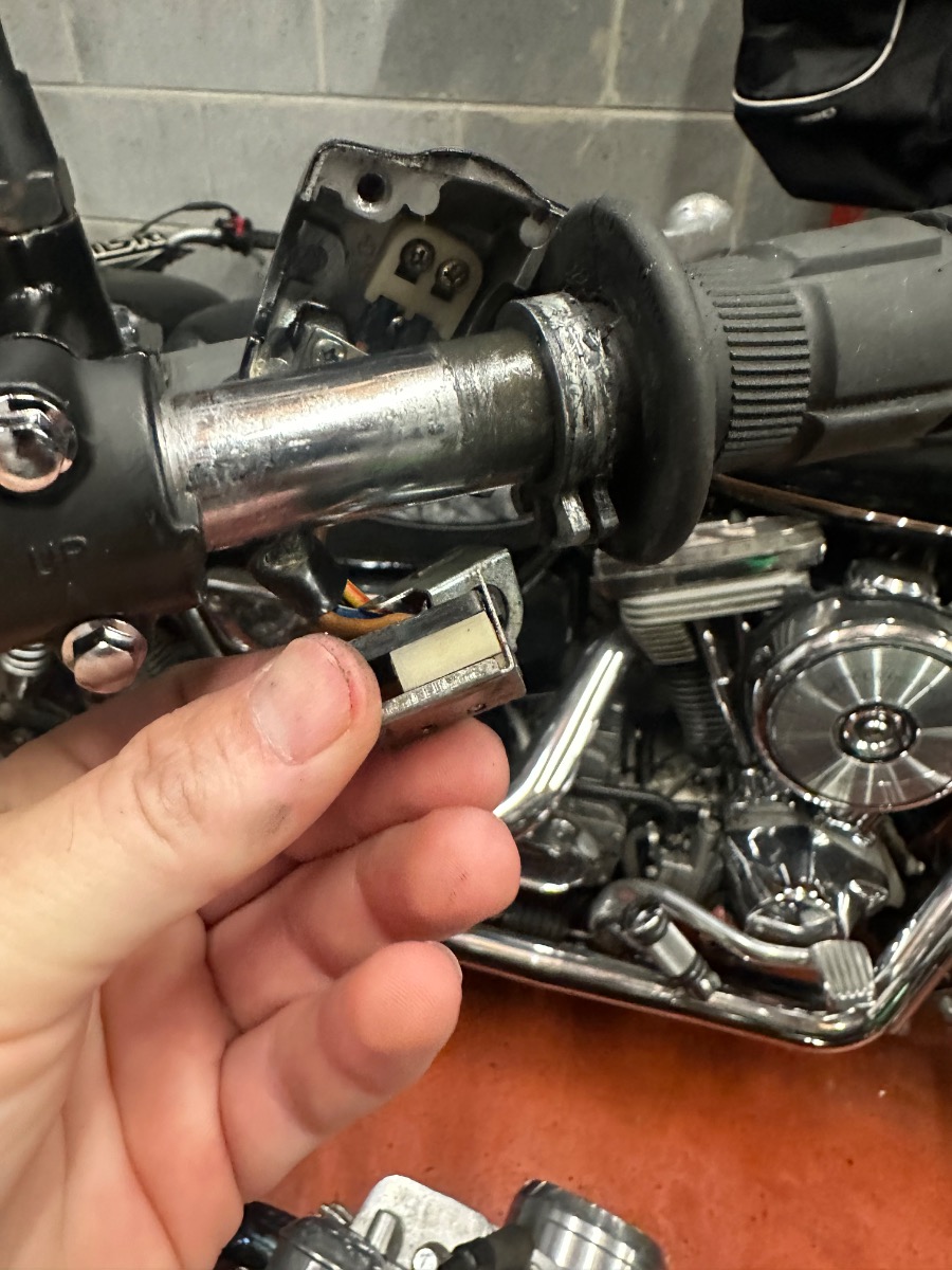 Now the fun part. The reason im not getting power is because the half moon shaped plastic piece has broken. Tried to superglue the part back together and that sort of worked, atleast enough to get the headlight to turn on, however I dont trust this fix long term. Now I need to find a replacement part. Any suggestions on how to approach this?