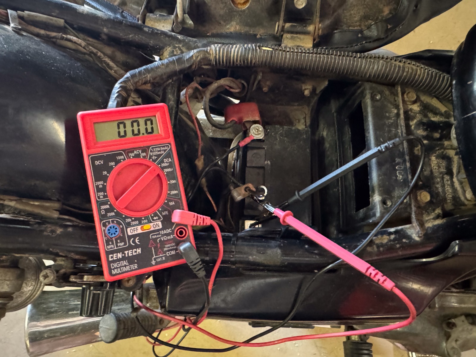 The battery is a gel and maybe a year and a half old, but it did spend a year of its life on a trickle charger while I was working on the bike. I did have to replace the regulator rectifier and it does read a little lower than spec, but hasn’t had any issues keeping the battery charged when ridden more regularly. I still need to pop the cover for the stator off and give that a closer inspection, I have read corrosion on the connectors can cause issues. I considered a three phase stator, but it seemed more expensive than it’s worth when the direct replacement regulator rectifier was only ~$20. Worth noting I still haven’t vacuum balanced the carbs, but it runs well normally as far as I’m aware, I’ve ridden it 200-300 miles since getting it road worthy.