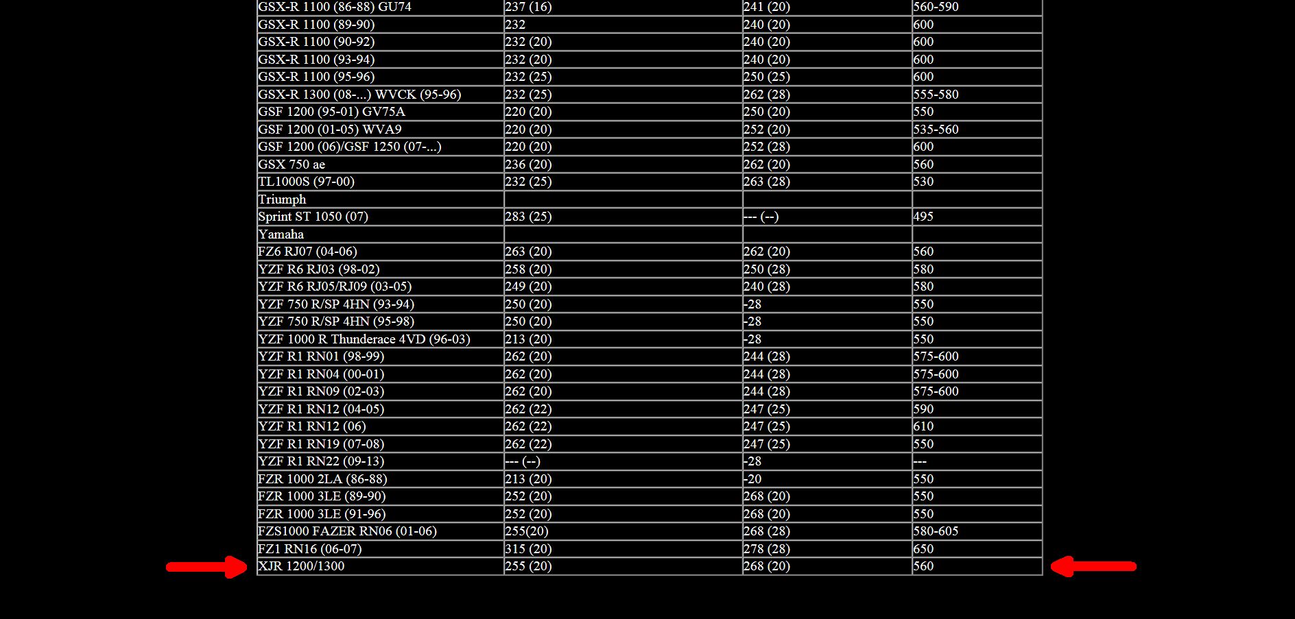 The Yamaha XJR1300 length is 560 mm from pivot to wheel axle