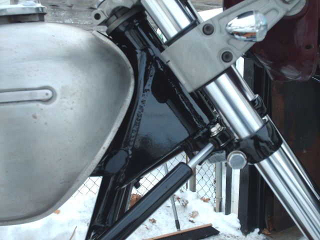 Ore try a set of fork legs from a CSR or early 80's Kaw 750 LTD that has the axle out front, up a couple of inches on the fork legs.
