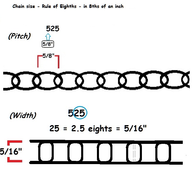 This applies when comparing differences between chains of the same design, such as two different size o'ring chains or two different size x'ring chains.