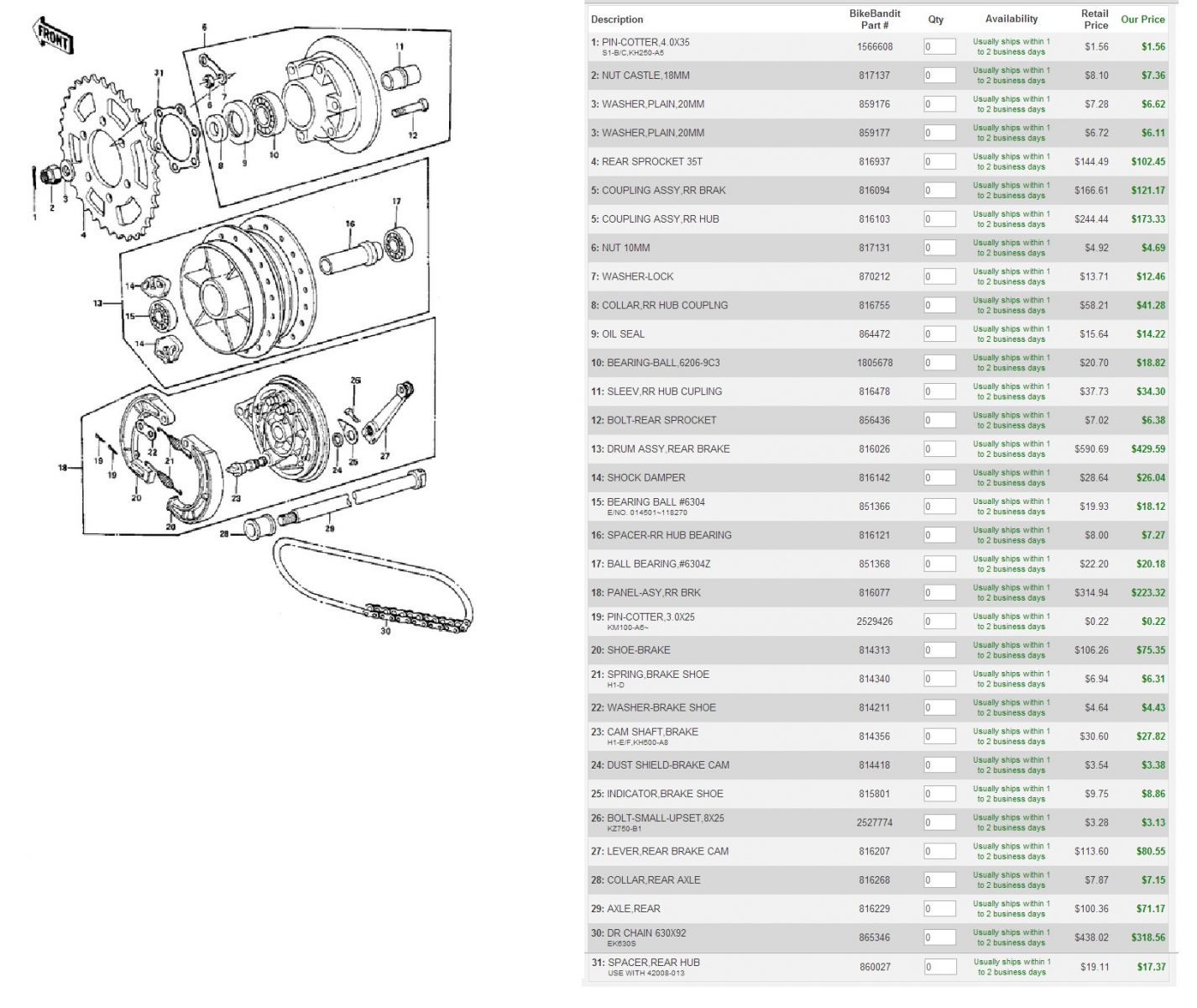 I have a 1976 KZ 900 with rear drum brakes. I was looking at the bike the other day and noticed that the rear oil seal on the left hand side of the wheel was not where it was supposed to be. It was out against the swing arm. Does anyone have a good diagram of how the rear wheel with drum brakes is supposed to be assemblied ? I am trying to find out what is wrong that the oil seal is not being held inplace where it should be. Thanks in advance.