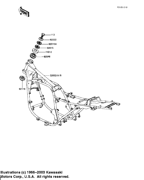 Patton - Thanks for the link, but the J model is exactly what I was looking at from kawasaki.com. The only difference I see is that in the diagram, there is a raised bracket across the back end (just behind the upper shock mounts), which mine doesn't have.