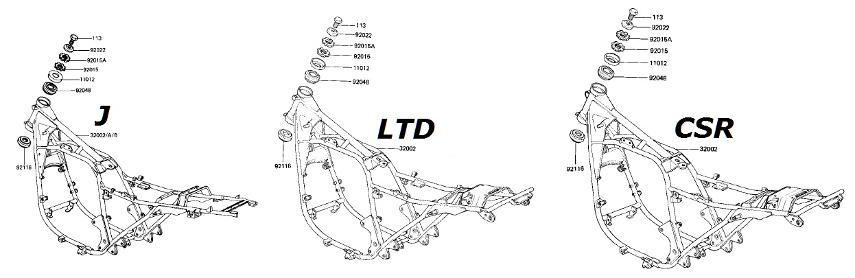 It looks like both the standard and the LTD came with the aluminum wheels, and the CSR came with the spoked wheels. However the LTD and CSR have a swing arm part# 33001-1077, where the standard had part# 33001-1071. So maybe the 1071 is a narrower version? Guess I'll have to take some measurements and see what I can find at the local yards.