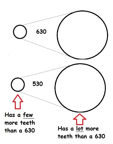 And can't use a 530 chain on a 630 sprocket.
