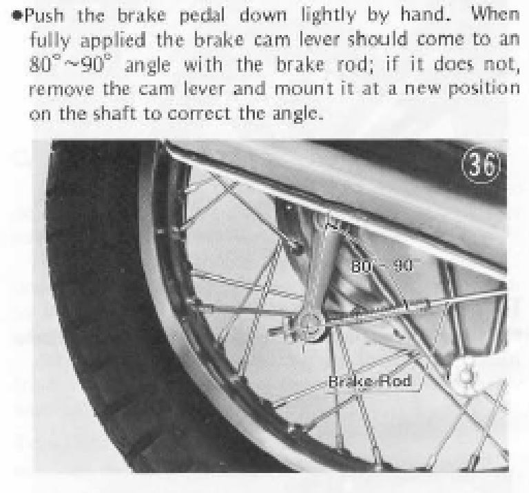Cam Lever Angle Inspection. The manual probably has a section on adjusting the rear brake. It's probably in the Scheduled Maintenance section... cam lever angle checked w the brake fully applied, most likely, as that's how it's done on my 81 650.