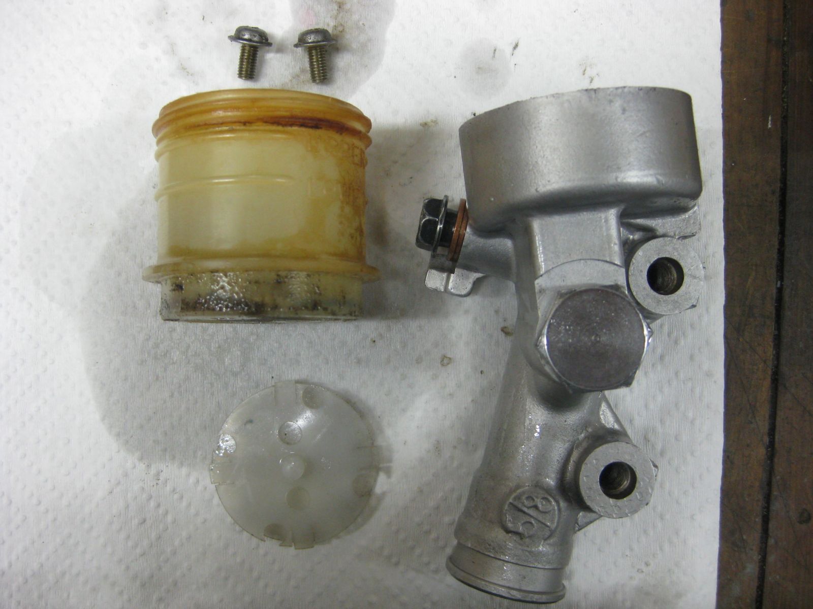 After rebuilding the rear brake with new m/cyl piston kit, new caliper seals, pads and fitting a new hose and banjo bolts, I bled the whole system and got good pedal pressure. So, I thought "Job Done!" Not so - I noticed that the m/cyl was weeping fluid from somewhere and thought that I'd messed up the assembly. So I pulled it apart and checked/re-assembled and bled again - still weeping somewhere - damn! After wiping it all down I placed the m/cyl on the bench, filled it with fluid and observed carefully. After awhile I could see that the fluid was slowly weeping out where the plastic reservoir meets the alloy body - looks like the bond between these two parts has perished. Anyone had this before and is there any repair that can be done, or am I up for a new m/cyl? If the latter, then does anyone have a m/cyl for sale - either new or good 2nd hand?