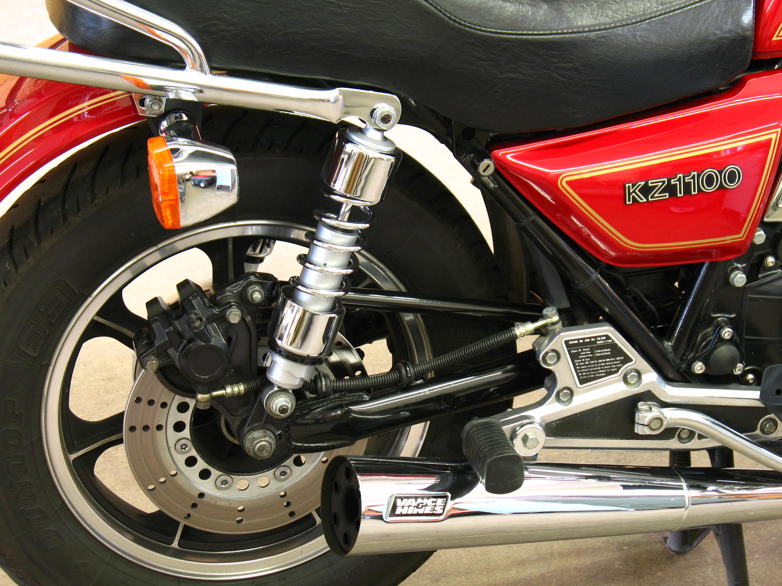 I tried this setup (vs. the spec 13-1/2" shock length) on my KZ1100A-2, and found it preferable to the air-ride rear shocks.
