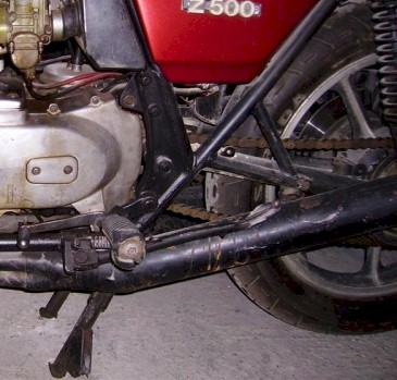 The earlier frames used tubular sections welded to the frame to form a triangle for rear peg mounts.