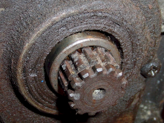 That drive sprocket wants to go AWOL but with no retainer to stop it is doing the beating I guess, even on a hardened steel spline. Your sprocket is disposable -the drive shaft spline needs to be kept.